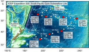 Australia’s iconic red dust is recognisable in deep ocean cores. Deposited in the central Pacific after an 8000km journey from Australian deserts, the dust is strikingly clear in material retrieved by IODP Expedition 329 as fine-grained, red-coloured sediment often referred to as ‘Pacific Red clay.’