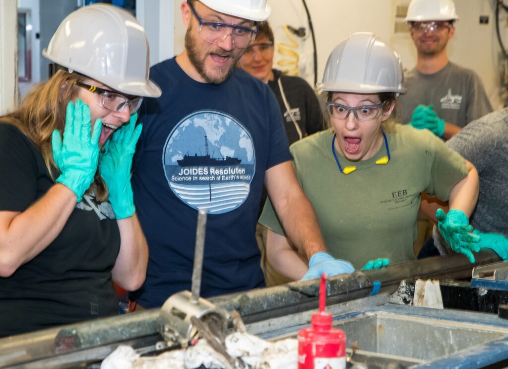 ![From left: Beth Novak (Assistant Laboratory Officer, IODP JRSO), Christophe Galerne (Physical Properties Specialist, GEOMAR Helmholtz Centre for Ocean Research Kiel, Germany), and Susan Boehm (Marine Laboratory Specialist, IODP JRSO) react excitedly to the sill obtained in a core. (Credit: Tim Fulton, IODP JRSO) [Photo ID: exp385_081]](https://www.iodp.org.au/files/2024/05/02ANUBrochure-1024x743.jpg)