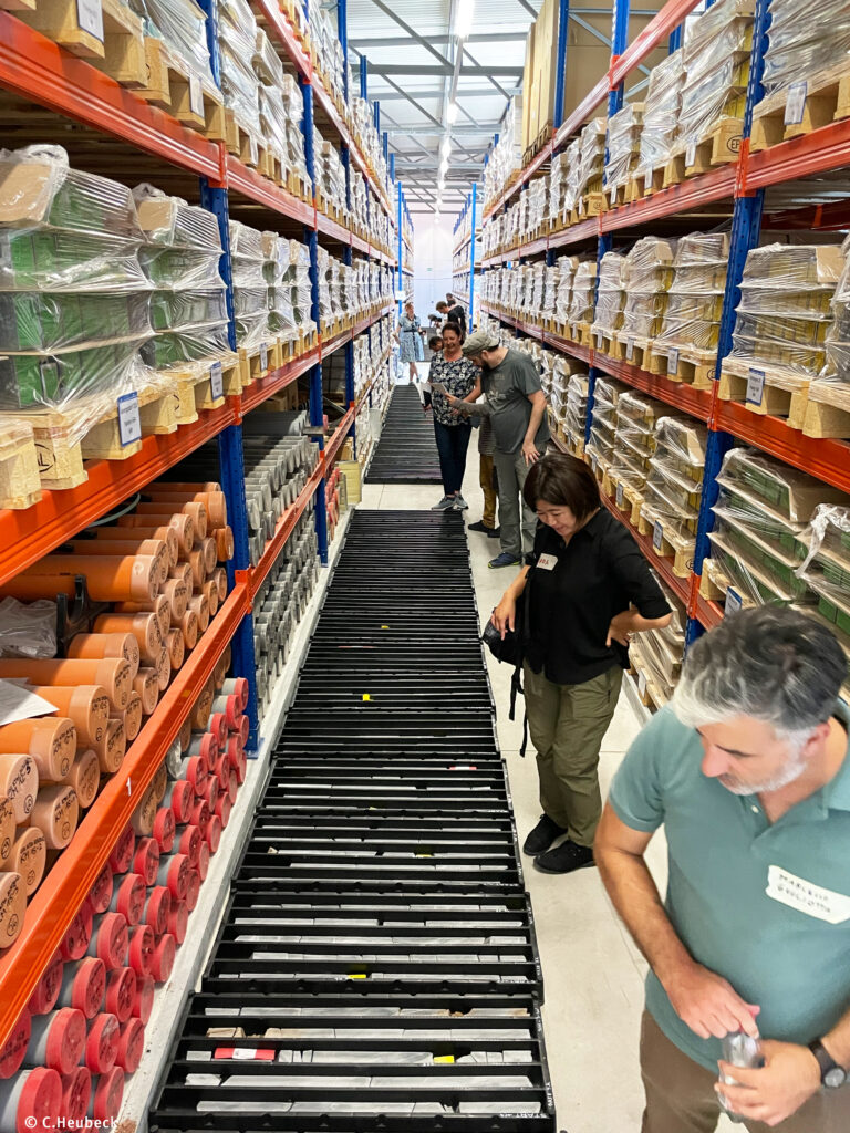Left: A library of cores collected during ICDP projects and housed at the Federal Institute for Geosciences and Natural Resources in Berlin-Spandau. The core samples, collected over decades from key sites across the globe, are available for Australian scientists to study.