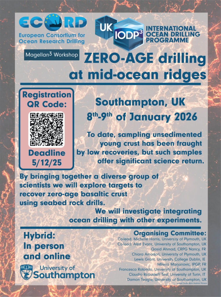 ZERO-AGE drilling: identify targets to recover zero-age basaltic crust at mid-ocean ridges. Learn more and register.