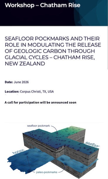 Chatham Rise Workshop: Seafloor Pockmarks and Their Role in Modulating the Release of Geologic Carbon Through Glacial Cycles. Learn more.
